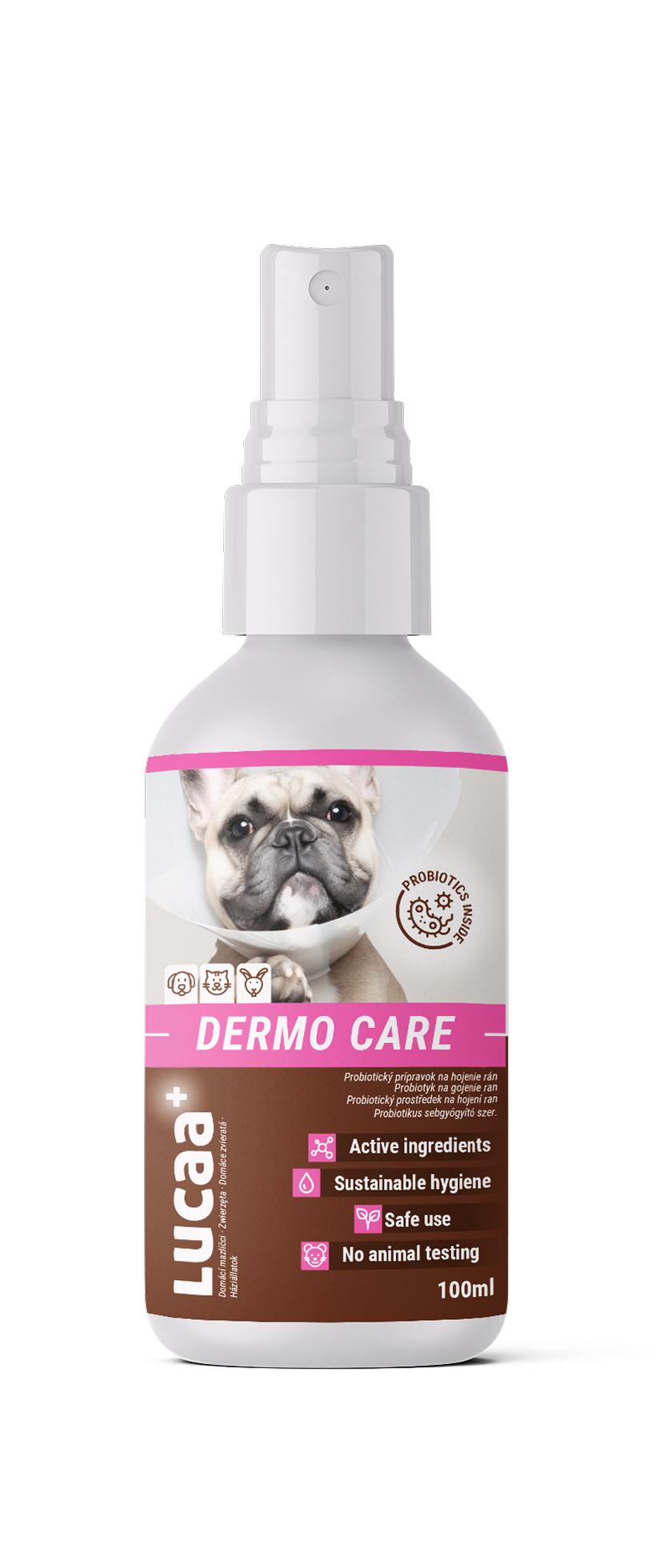 LUCAA+ Dermo Care to probiotyczny spray wspomagający szybsze i bezpieczniejsze gojenie się ran u zwierząt domowychDzięki unikalnej kombinacji dobroczynnych bakterii przywraca równowagę mikrobiologiczną, usuwa zanieczyszczenia organiczne i chroni przed infekcjami, w tym opornymi bakteriami MRSA.